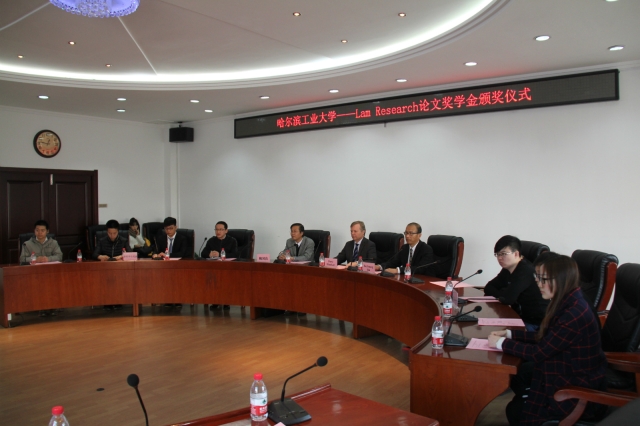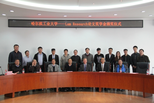 颁奖仪式由台湾a片 党委副书记张弛主持,郭斌副校长代表学校对Lam Research公司来宾到访表示欢迎和感谢,并介绍了我校2016年来的科学研究和人才培养情况。Lam Research全球首席技术官Dave Hemker介绍了Lam Research公司的基本情况,并希望与哈工大发展长期友好合作关系。台湾a片 副院长费维栋教授介绍了奖学金的评审情况,台湾a片 党委书记刘伟宣布了获奖名单。获奖学生12级博士冯伟和获奖教师胡平安教授先后发言,表达了对Lam Reserarch公司的感谢。最后,在座师生和Lam Research公司来宾针对微电子领域热点技术问题进行了热烈的讨论交流,并合影留念。