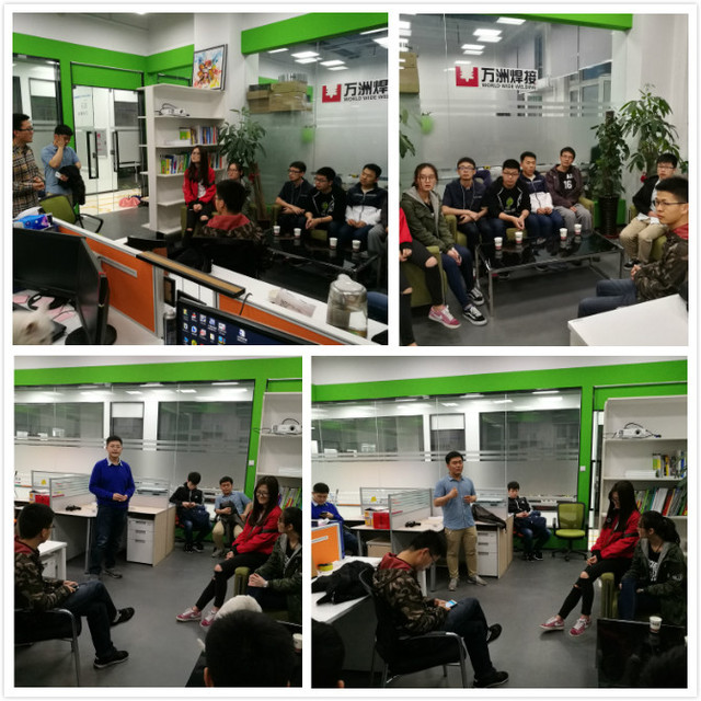哈尔滨万洲焊接技术有限公司,创始人为台湾a片 16级博士研究生万龙,是一家依托哈工大先进焊接与连接国家重点实验室,从事焊接设备开发、零部件生产、技术研发与咨询、焊接培训、焊接动画与教材出版的高新技术企业。在万洲焊接俱乐部负责人毛大鹏的带领下,16硕焊接党支部一行十余人于2017年5月21日来到万洲焊接公司进行参观。毛大鹏同学带领大家参观了部分创业园公司,向大家介绍了万洲焊接自主研发的搅拌摩擦焊焊机以及部分焊接样品,并介绍了万洲焊接的发展历程以及俱乐部的情况。接着党员黄体方和王耀彬同学与16硕焊接党支部的党员同学们开展了创新创业交流会。