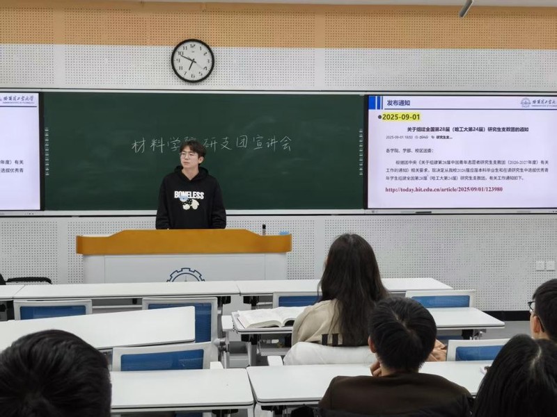 首先,哈工大第23届研究生支教团西藏拉萨队队长陈熙分享自身加入研支团的动机以及支教的感悟,号召大家积极成为研支团的一员,为建设教育强国贡献青春力量。而后,第21届研支团耿艺嘉结合自身支教经历,为同学们介绍研支团的选拔流程、支教地情况、支教相关的工作内容。第24届研支团王曹辉从选拔流程、选拔条件为大家解读研支团选拔的相关要求,帮助大家明确目标,规划未来。第24届研支团成员李源婷就选拔条件中的中小学教师资格证的相关要求展开,从笔试和面试两个方面为同学们分享教资备考经验。活动过程中,研支团成员对同学们提出的问题逐一解答。