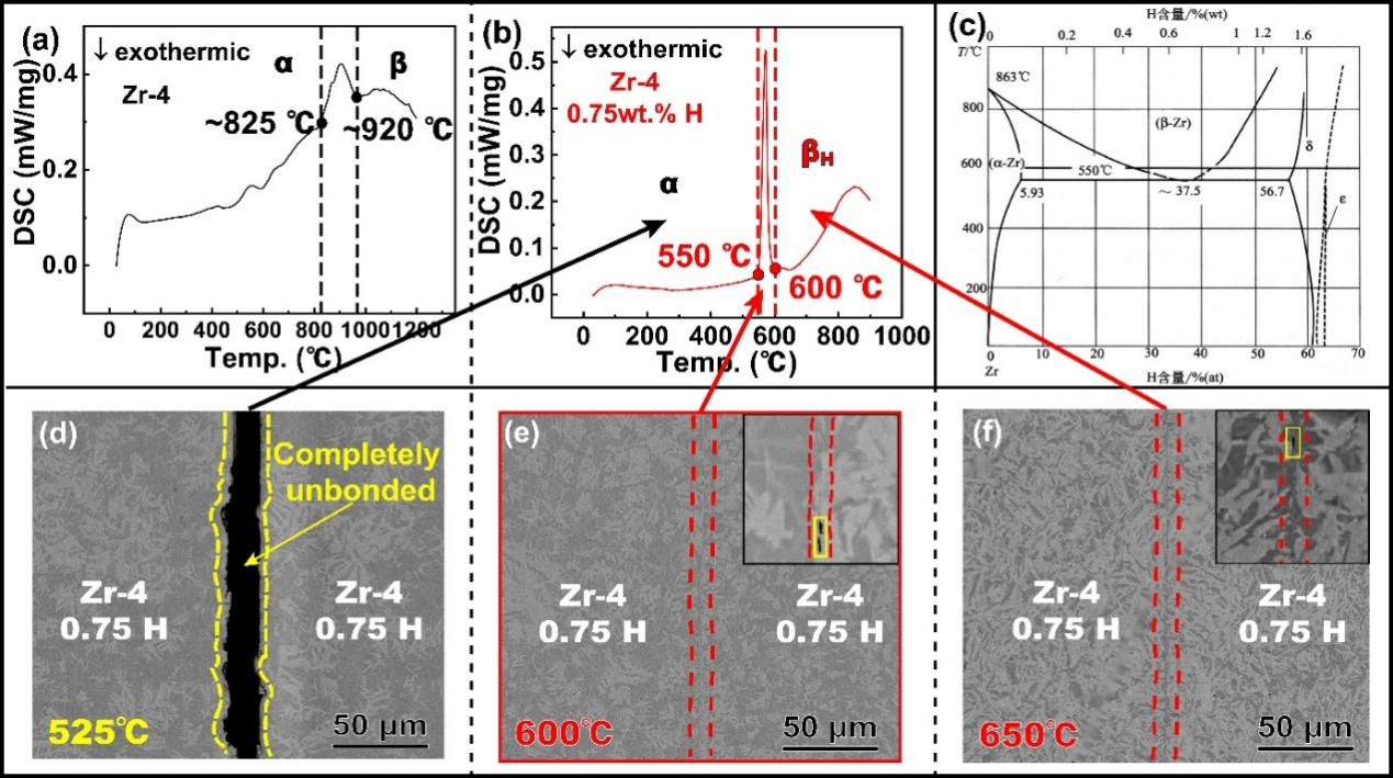 Zr-4合金凭借低热中子吸收截面、优异耐蚀性能和适中力学性能是唯一水冷核反应堆包壳材料。新型核燃料包壳因其焊缝多、焊缝间距小、焊缝重叠的特征必须采用超低温扩散连接工艺。合金置氢辅助扩散连接被认为是最为适用的低温连接方法。然而,对于氢化合金实现低温扩散连接的物理机制研究仍处于猜想阶段。